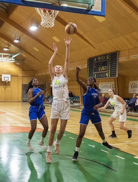 Franzi Bauer und Agi Röth eröffneten den dritten Spielabschnitt mit je einem getroffenen 3-Punkte-Wurf und stellten auf 48:29. Auf Seiten der Gäste war es wieder Flora Göd, die den Rückstand verkürzen konnte, ehe LouLou Kenens mit einem Freiwurf und Michelle Slunecko mit einem weiteren 3-Punkte-Wurf den Vorsprung für die Flames weiter ausbauen konnten. Mit viel Kampfgeist konnten die jungen Gäste den Rückstand wieder auf 13 Punkte verkürzen. Nun legten die Basket Flames wieder einen Zahn zu und beendeten das Viertel mit einem 8:2 Run. Score: 58:41