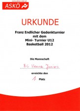 Unsere U12 Mannschaft hat am vergangenen Freitag beim Franz Endlicher Gedenkturnier am 6.1.2012 in der Steigenteschgasse den 1. Platz gewonnen!