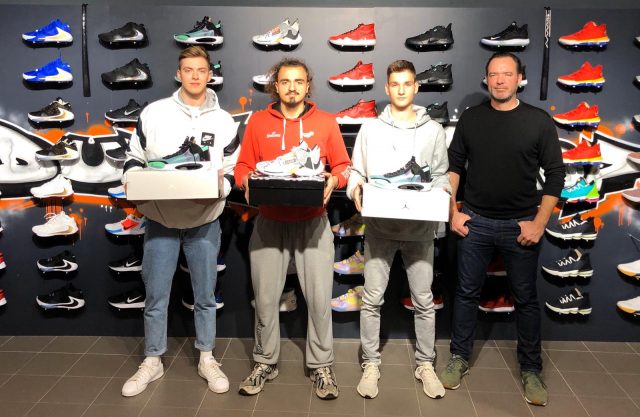 Als kleinen Vertragsverlängerungsbonus gab es für die jüngsten Flammen im B2L Kader nagelneue Schuhe. „Lazar, Gabriel und Aleksa stehen fast täglich in der Halle und geben alles im Training. Das muss einfach auf guten Schuhen passieren“, meint der Neo-Obmann mit einem Augenzwinkern.