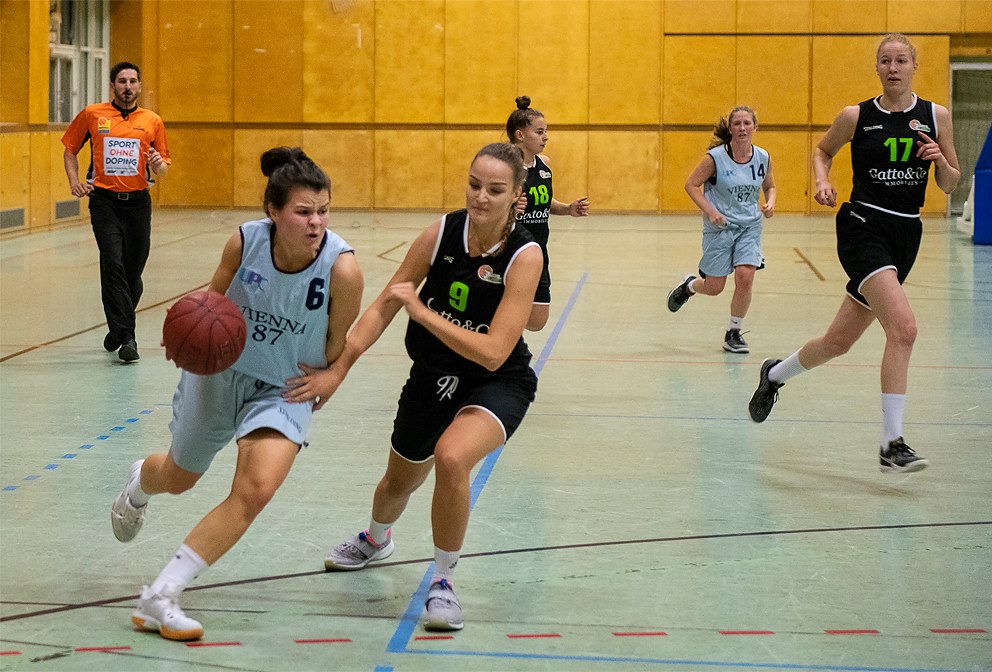Die Ladyflames starten konzentriert in das Spiel und halten von der ersten Minute an das Tempo hoch. Durch unseren Größenvorteil und die Routine können immer wieder schöne Situationen herausgespielt werden, die hochprozentig verwertet werden. So endet erste Viertel mit einer 29:7 Führung für die Ladyflames. Auch im zweiten Viertel bietet sich den ZuschauerInnen ein ähnliches Bild. Nun sind es vor allem die Centerspielerinnen Kostov und Rehberger, die sich zahlreiche verworfene Würfe zurückholen, nachlegen und unter dem Korb scoren können. Auch unsere Guards setzten gekonnt einerseits ihre Schnelligkeit ein, um nach vorne Tempo zu machen und schnelle Abschlüsse zu forcieren, und andererseits mit effektiver Defense die schnellen Gegenangriffe von Playmaker Diana Picorusevic zu verhindern. Der Halbzeitstand am Scoreboard zeigt dementsprechend eine verdiente Führung von 54:18 für unsere Damen. In der zweiten Spielhälfte änderte die junge Mannschaft von Vienna United ihr Konzept und stellte auf Zonenverteidigung um. Doch auch diese konnte den Spielfluss unserer Damen an diesem Abend nicht stoppen. Wir verwerteten unsere Chancen weiterhin hochprozentig und Coach Renertova konnte viel wechseln, sodass alle Spielerinnen viel Spielzeit erhielten. Speziell die jungen Spielerinnen bewiesen, dass auch sie bereits auf hohem Niveau mitspielen können und zeigten einige gelungene Aktionen, die in Punkte verwandelt werden können. Fast alle Damen (Röth spielte krankheitsbedingt nur im ersten Viertel) konnten sich in die Scorerliste eintragen. 1 Minute vor Spielende erzielte Kenens die letzten Punkte zum Endstand von 100:39 aus Sicht unserer Damen.