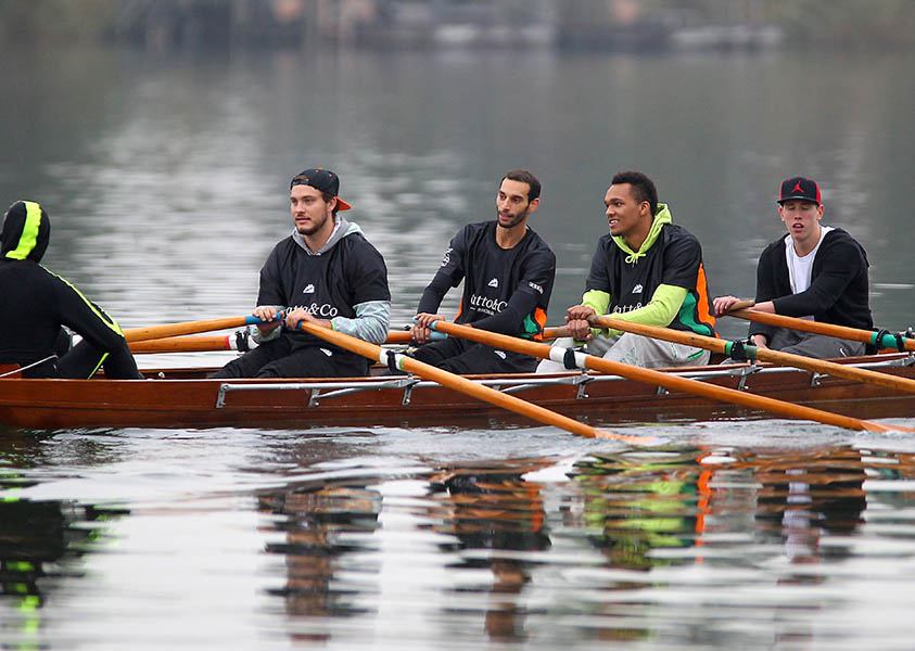 Im Beisein von Raphael Hartl – zweifacher Olympiateilnehmer im Rudern – und WRC Donaubund-Obmann Chris Rutka, der bei den Flames als Steuermann agierte, empfing ABL-Präsident Karl Schweitzer Spieler vom BC Vienna, den Klosterneuburg Dukes, den Vienna D.C. Timberwolves und den Basket Flames im Ruderclub Donaubund. Nach kurzer, knackiger Einschulung ging es auch schon auf das Wasser.